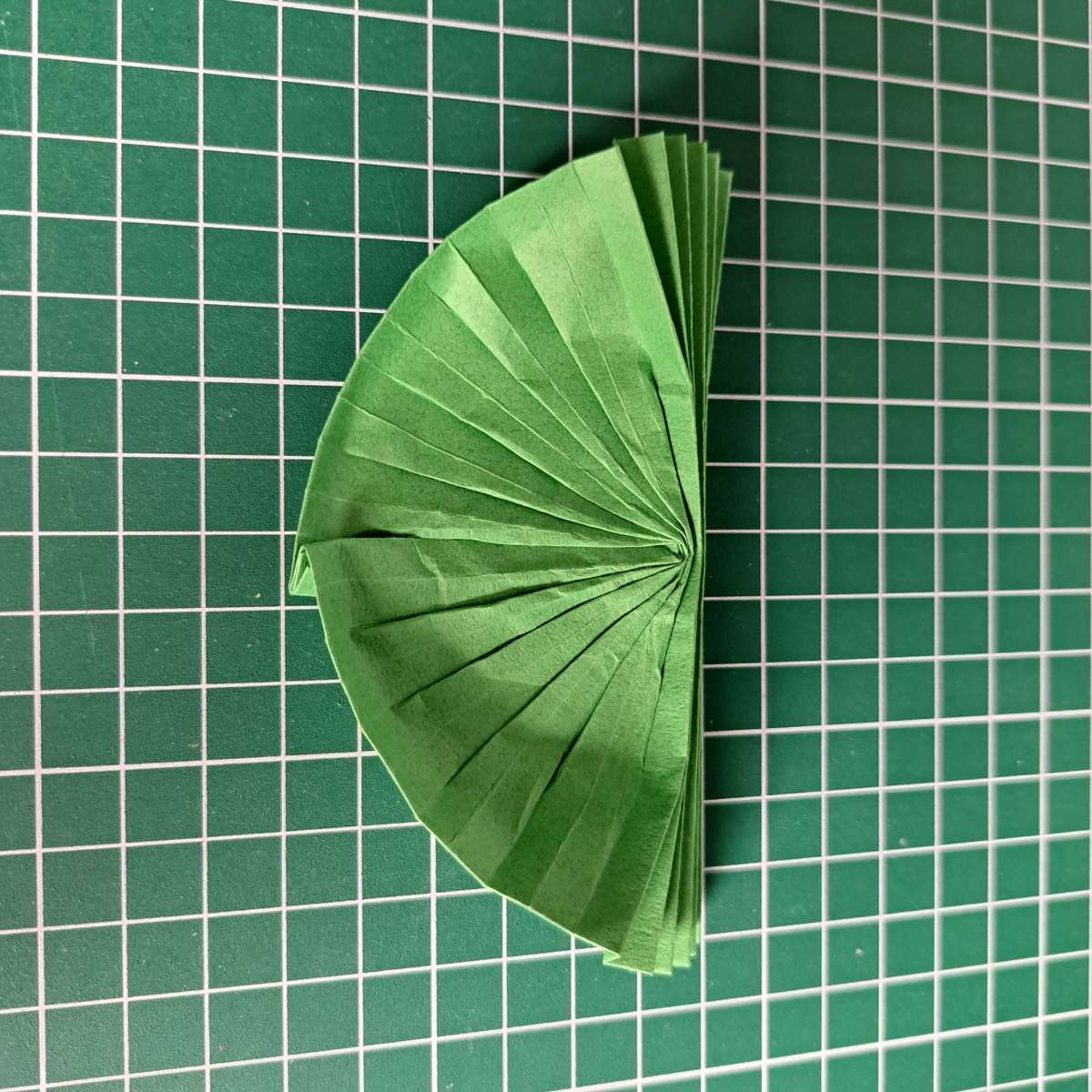 Moving towards the middle, the petals become smaller. I was able to solve this aspect by making trapezoid molecules. the paper in between the molecules is folded inside. However the excess paper would then be inside the petals. So I decided to split the molecules in their middle and place the unused paper there. Near the middle, there will be enough extra paper to make one or two rows with ten petals each and to make the studs in the center of a water lily.